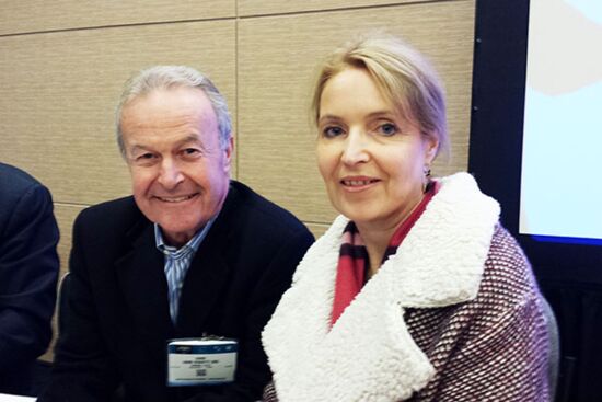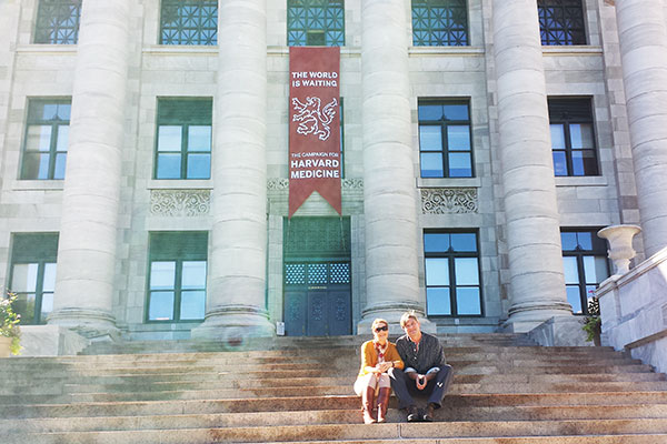Dr. Eberlein vor der Harvard Medical School 2015 mit ihrem Ehemann.