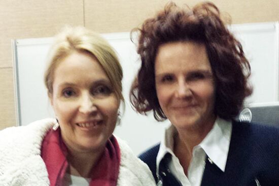 Dr. Eberlein vor der Harvard Medical School 2015 mit ihrem Ehemann.