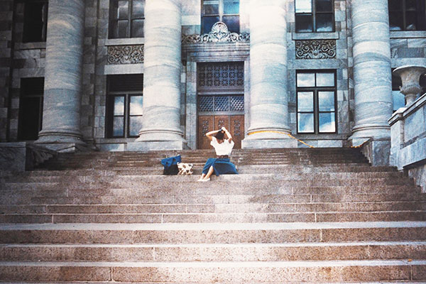 Dr. Eberlein 1989 als Medizinstudentin vor der Harvard Medical School.